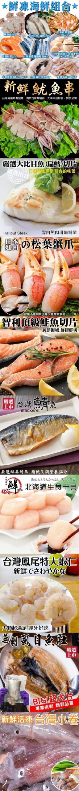 精選分類 分類介紹 高級貝蝦蟹類 18 products 解凍即食/蔬菜類 4 products 強檔特惠 10 products 嚴選海鮮 12 products 休閒零食 3 products 精選商品 精選商介紹 【卡迪那】95℃薯條-經典原味(18gx5入x12盒) 休閒零食 NT$750 商品特色 · 運用新一代「95℃低溫真空 加入購物車 Quick view 【日本】生食級干貝2S-1kg/盒 高級貝蝦蟹類 NT$4,000 五星級日料必出的珍貴食材 嫩又彈牙、甘甜 加入購物車 Quick view 【日本】生食級干貝2S-500g/盒 高級貝蝦蟹類 NT$2,300 五星級日料必出的珍貴食材 嫩又彈牙、甘甜 加入購物車 Quick view 【烤肉組合】全海鮮多多6件組 強檔特惠 NT$3,450 商品特色 給海鮮控的中秋夢幻大補帖!一次 加入購物車 Quick view 【烤肉組合】多人歡聚派對23件組 強檔特惠 NT$10,000 商品特色 今年中秋,要烤就烤得氣勢滿滿、 加入購物車 Quick view 【高級居酒屋愛用】阿根廷巨無霸魷魚一夜干*5入 嚴選海鮮 NT$1,800 商品特色 新鮮阿根廷魷魚專業處理 經過一 加入購物車 Quick view 10尾紅條魚/珊瑚石斑(350~450g±10%/尾) 高級貝蝦蟹類 NT$3,000 五朝港嚴選的紅條魚/珊瑚石斑,表層紅潤全 加入購物車 Quick view 一口烏金條(10盒裝) 嚴選海鮮 NT$8,000 商品規格 ▼品名:一口烏金條 (盒裝) 加入購物車 Quick view 熱門商品 熱門商品說明 龍蝦烏魚子白鯧海鮮禮盒(1188g/1組)*2組 強檔特惠 NT$10,000 1.商品品名:【海之醇】龍蝦烏魚子白鯧海 加入購物車 Quick view 鱈場蟹天使紅蝦3入組合 高級貝蝦蟹類 NT$2,150 商品規格:【海之醇】秋之颯宴鱈魚場蟹天使 加入購物車 Quick view 鮮凍鯛魚片(300g/包)5包(約25片) 嚴選海鮮 NT$12,000 嚴選新鮮鯛魚,急速冷凍鎖鮮,貼心去刺處理 加入購物車 Quick view 鮮凍海鮮組合 強檔特惠 NT$4,800 台灣吳郭魚(已去鱗、去鰓、去內臟),肉質 加入購物車 Quick view 馬上招財餅乾鐵盒(6入)(1箱) 休閒零食 NT$4,480 商品特色 ●多款手工餅乾:內含洛神花茶餅 加入購物車 Quick view 頂級熟凍松葉蟹(375-420g/隻)2隻 高級貝蝦蟹類 NT$3,180 嚴選頂級松葉蟹,蟹肉鮮甜細緻、蟹香濃郁, 加入購物車 Quick view