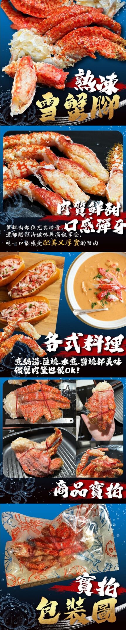 熟凍雪蟹腳,選自優質海域,蟹肉鮮嫩多汁、